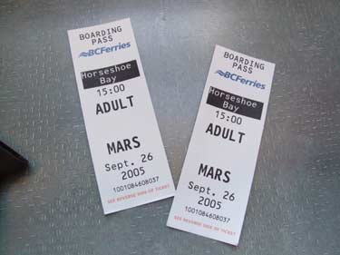 BCフェリーの乗車切符