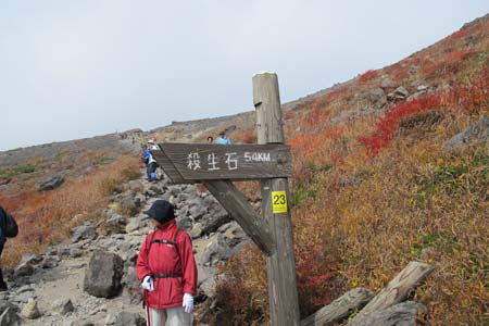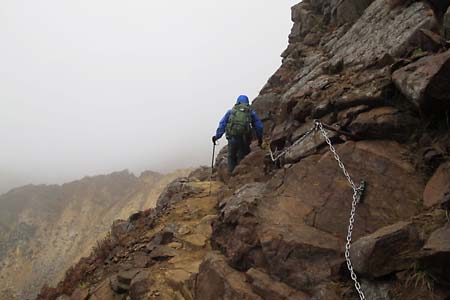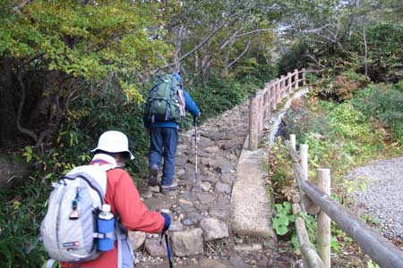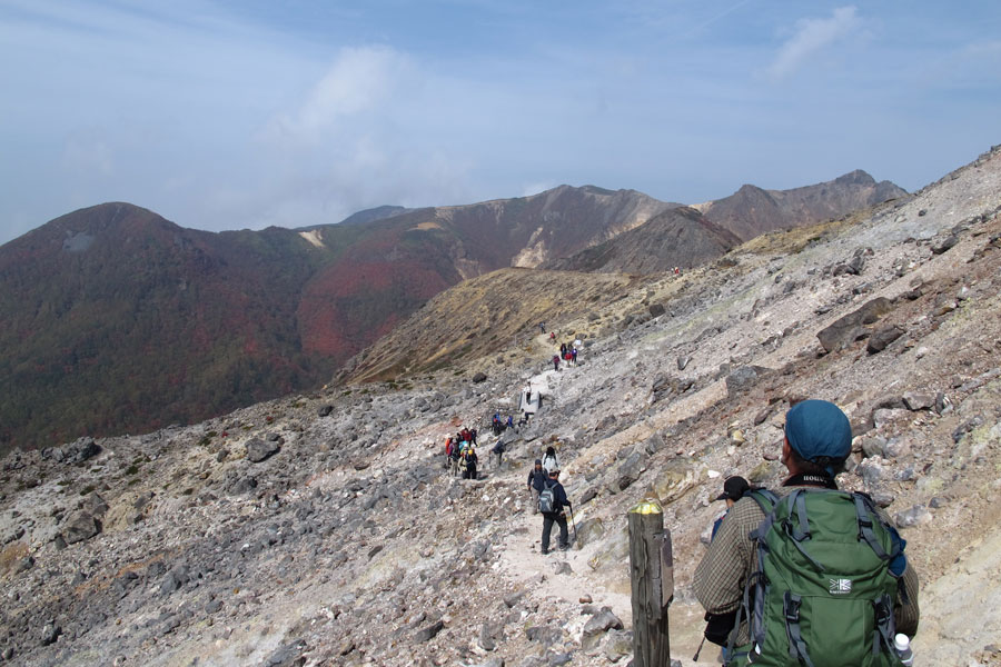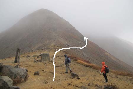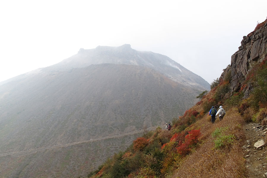 茶臼岳の中腹を巻いて避難小屋へ向かう |