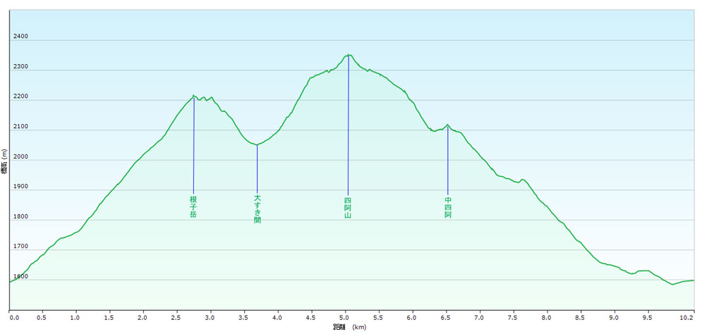 登山口標高/1590M 標高差/764M 総歩行距離/10181M | ||||