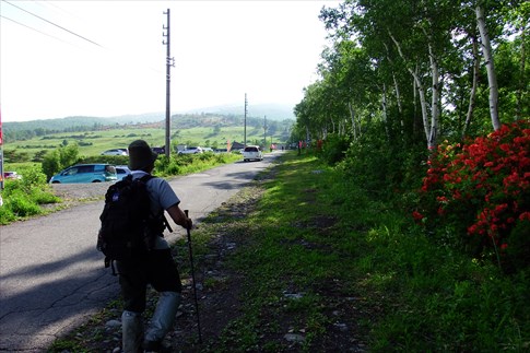 最寄り駐車場は満杯で最下段の駐車場から登山口へ向かう | 根子岳登山口(トイレあり) | |||