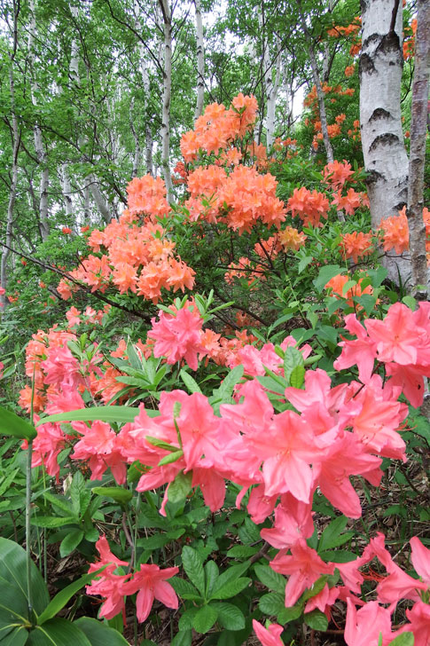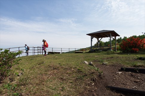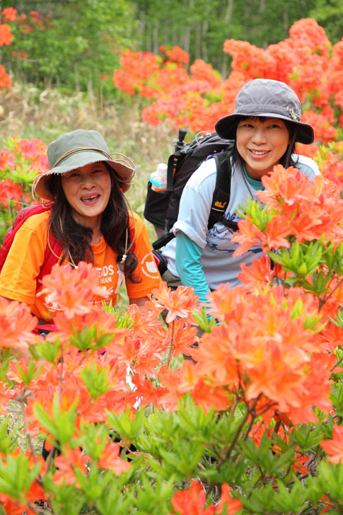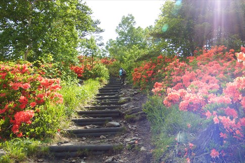 岩稜の奥に四阿山を望む | ムラサキヤシオ | |||