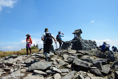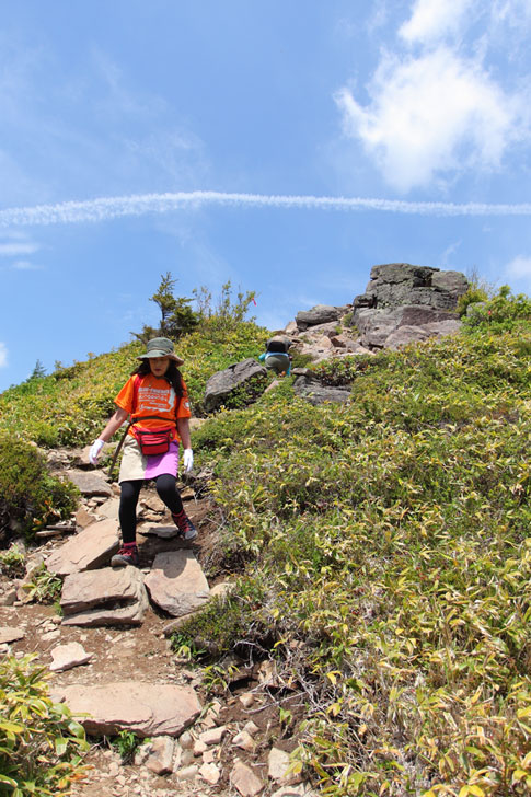 頭上が開けガレ場になると根子岳山頂が近い | ||||