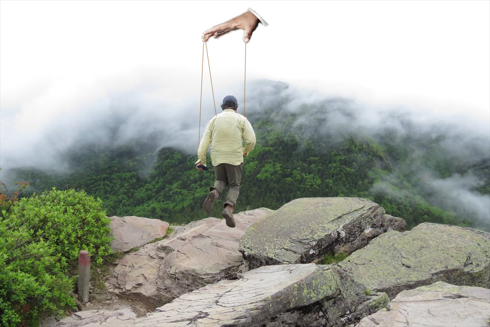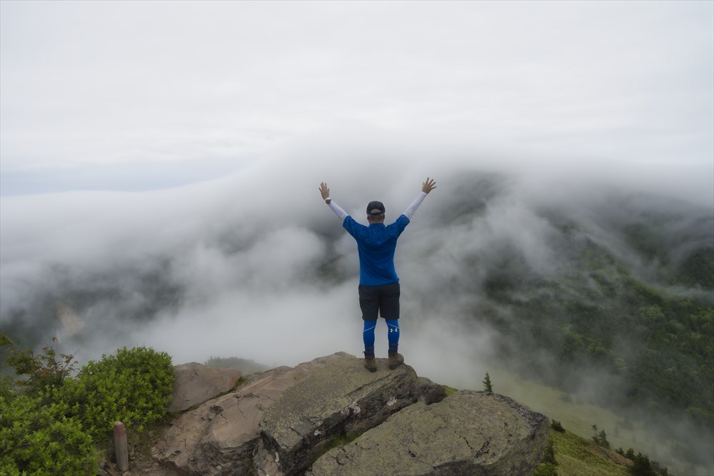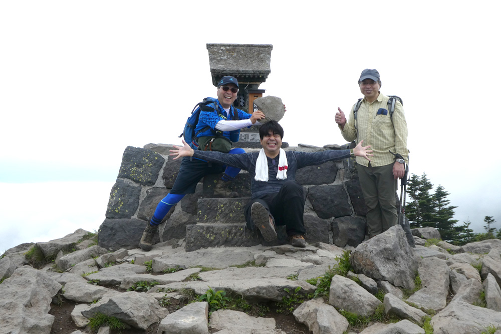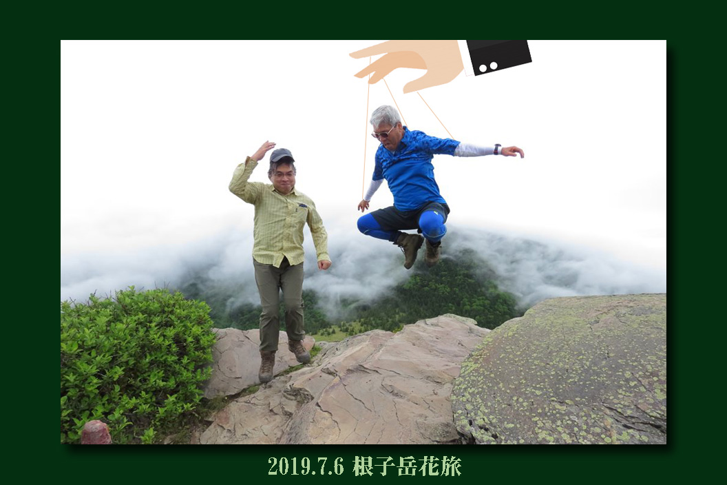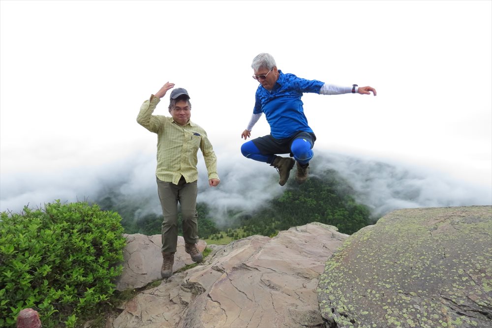 「大ふすま」に下る手前の四阿山展望岩より爺定番ポーズ (^O^)v | ||||