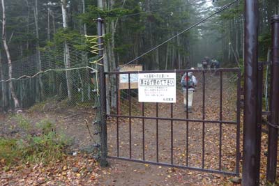 高山植物を鹿の食害から守るために設けられた電柵ゲート |