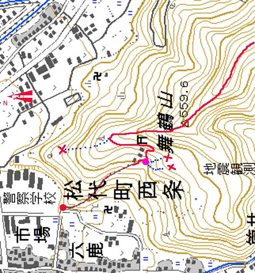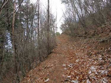 舞鶴山直下の白鳥神社分岐点 この景色が見えたら左ルートを選択 警察学校方面に下り込んでしまうので要注意 |