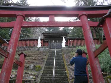 下山時撮影 白鳥神社分岐点を見過ごしてしまい藪漕ぎのすえ鳥居に辿り着く (^_^;) |