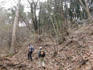 大半が松食い虫の被害に・・・ | ここからの急登をクリアすると稜線に出る | |||