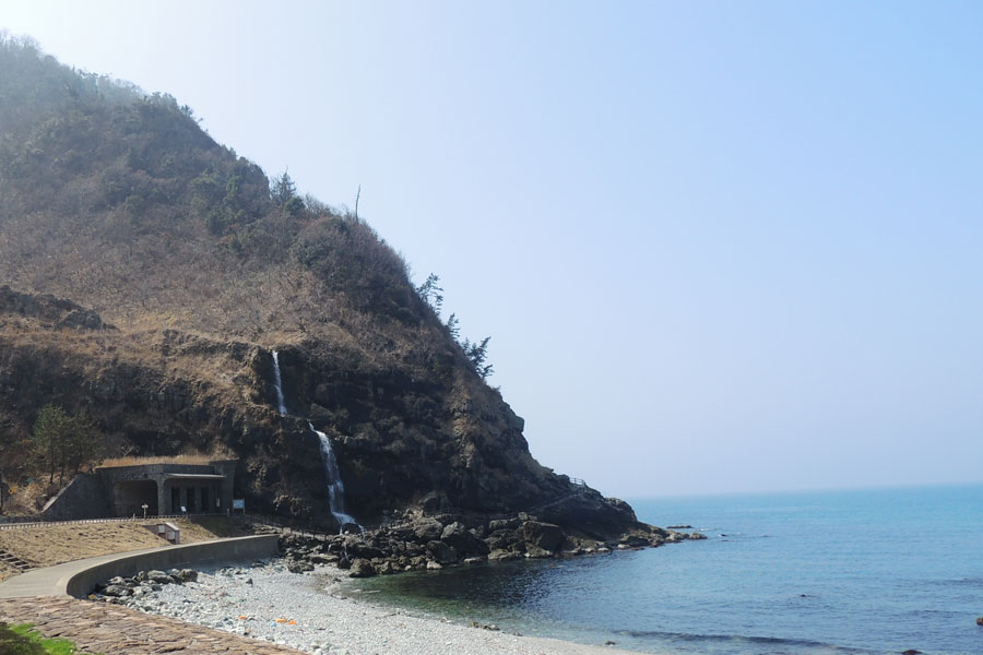 厳冬期の強い風が吹く日は、滝が重力に逆らって吹き上げることがあり、別名「吹き上げの滝」とも |