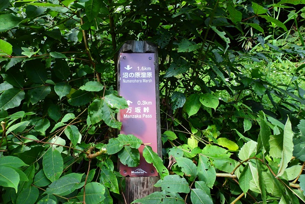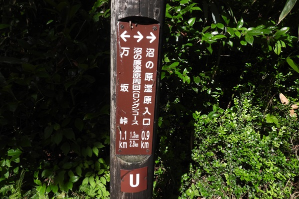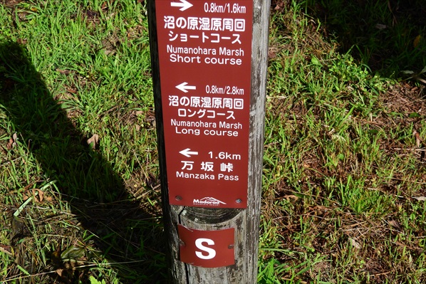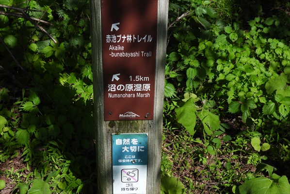 車道を斜めに横切り沼の原湿原入り口へ | 沼の原湿原まで1.5` | |||