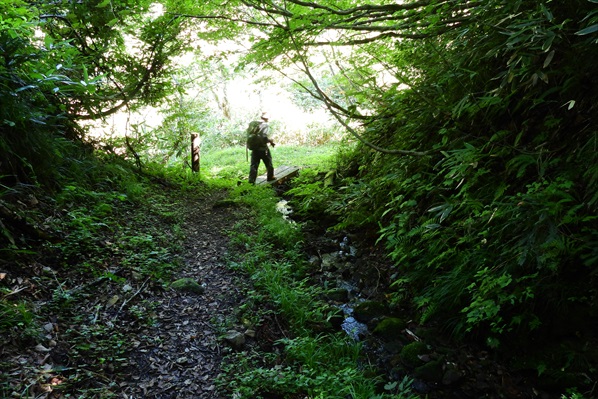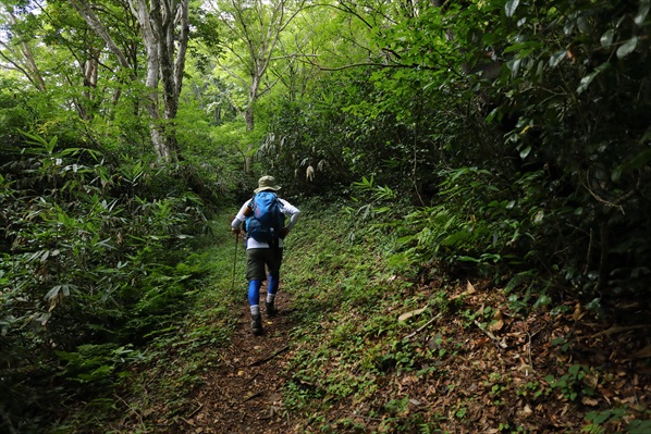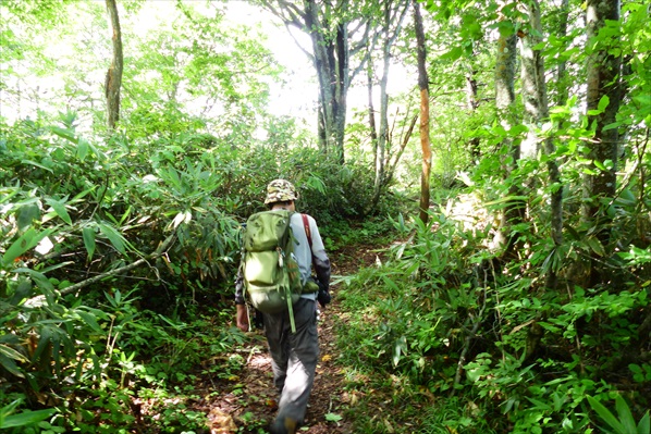 前後左右 熊に細心の注意を払いながら万坂峠へ | ||||