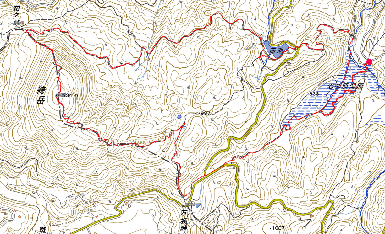 沼の原湿原〜袴岳鳥瞰図ルート地図 (計曲線 50M 主曲線 10M) |