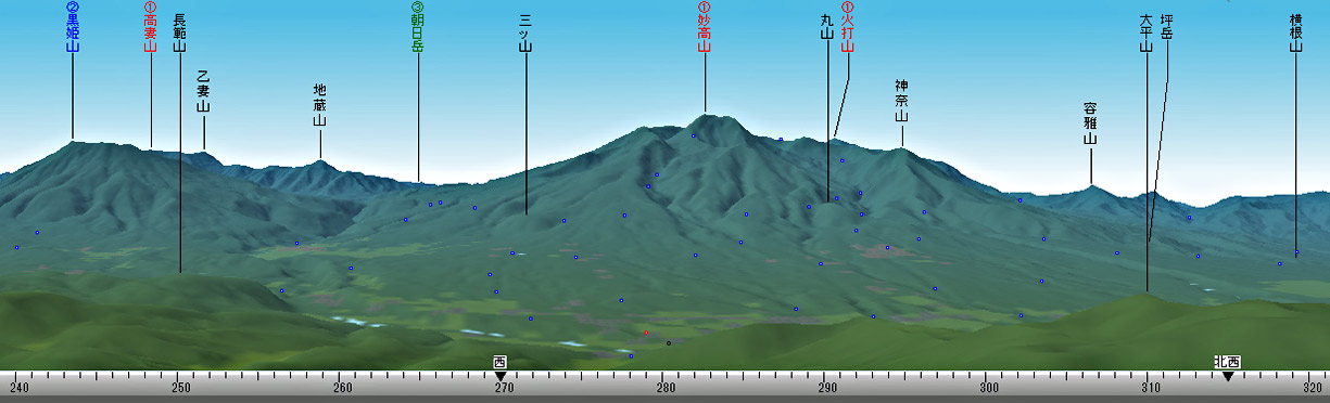 袴岳からのパノラマ図解 | ||||