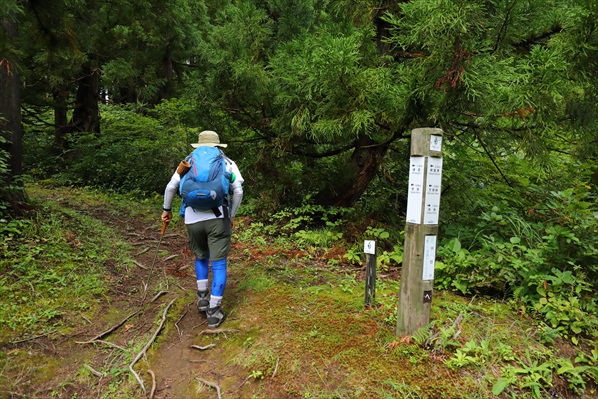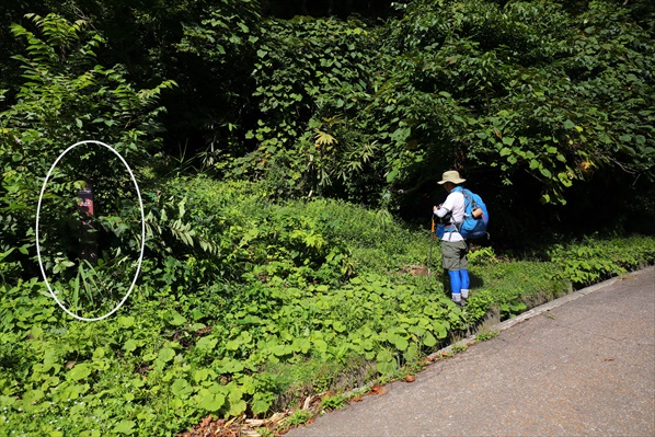 藪に覆われて分かりにくい指導標・万坂峠まで0.3` | ||||