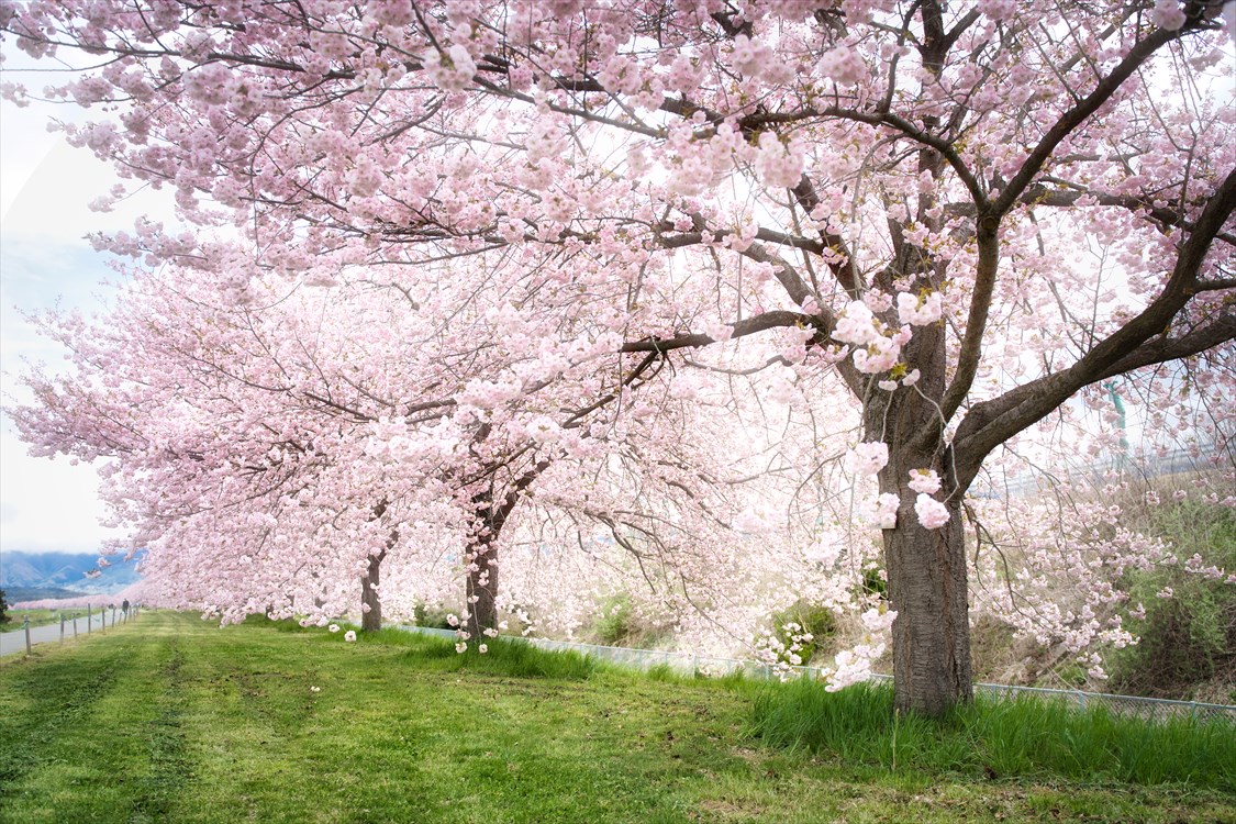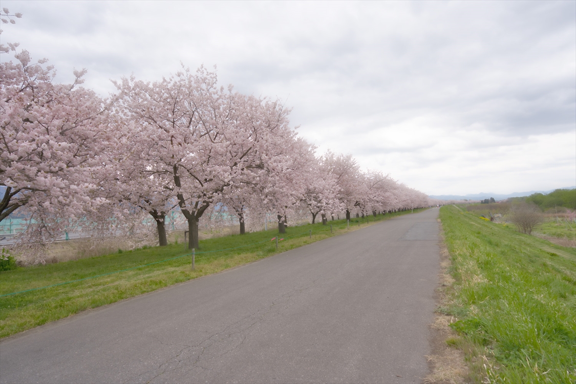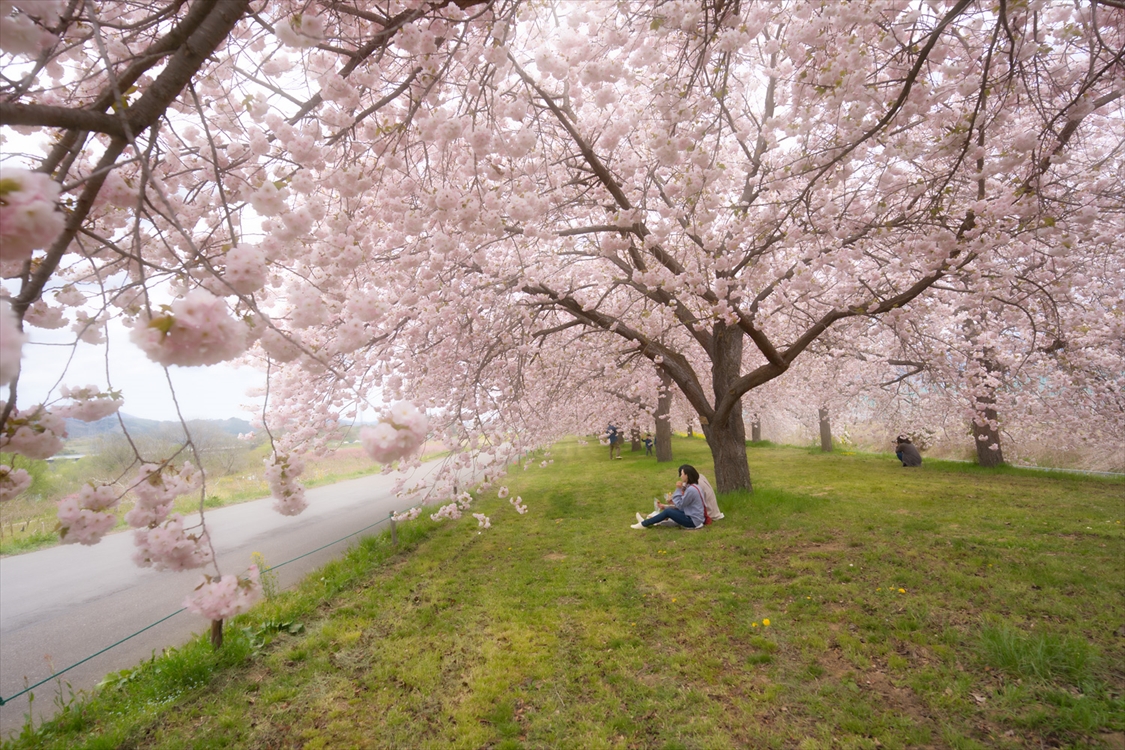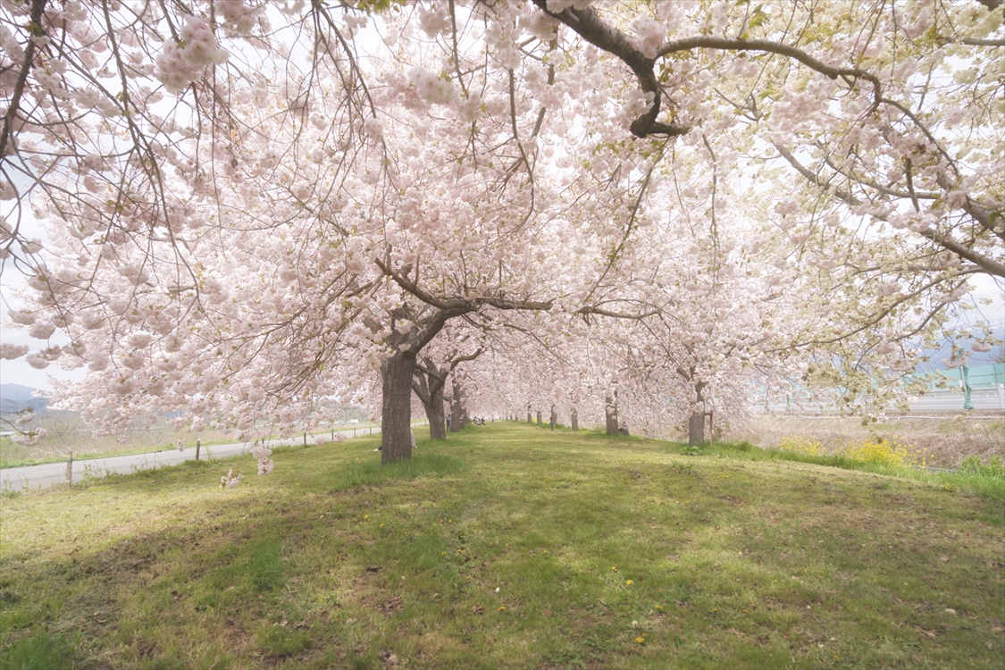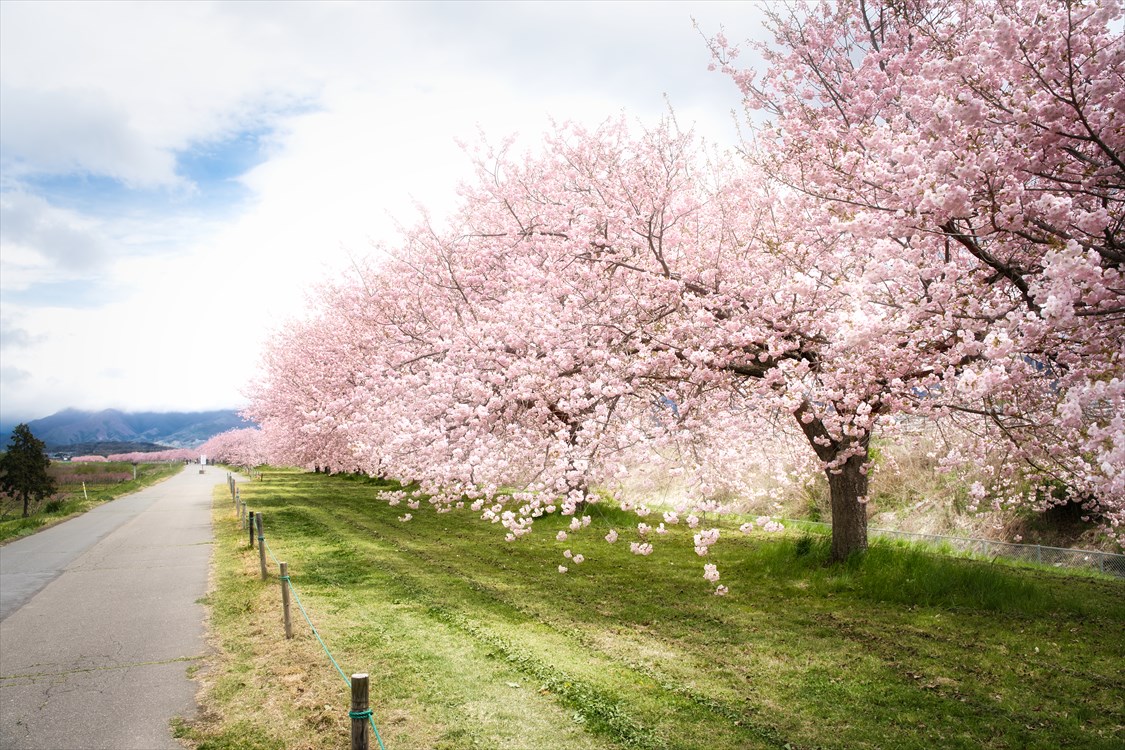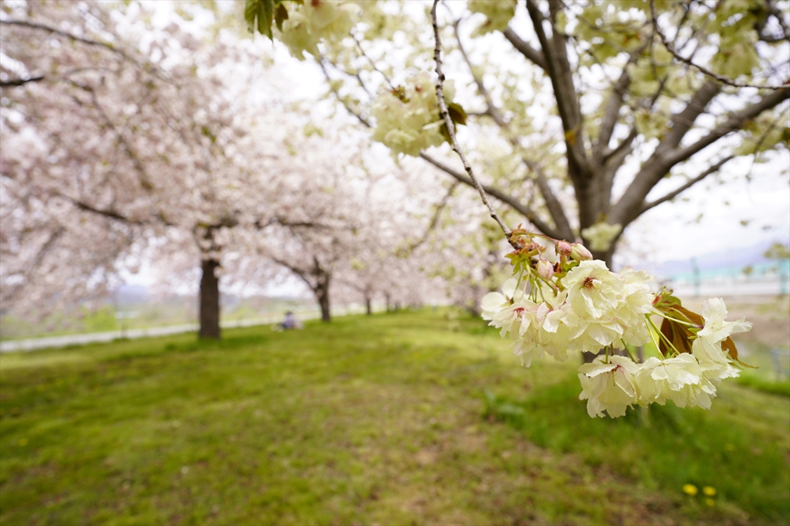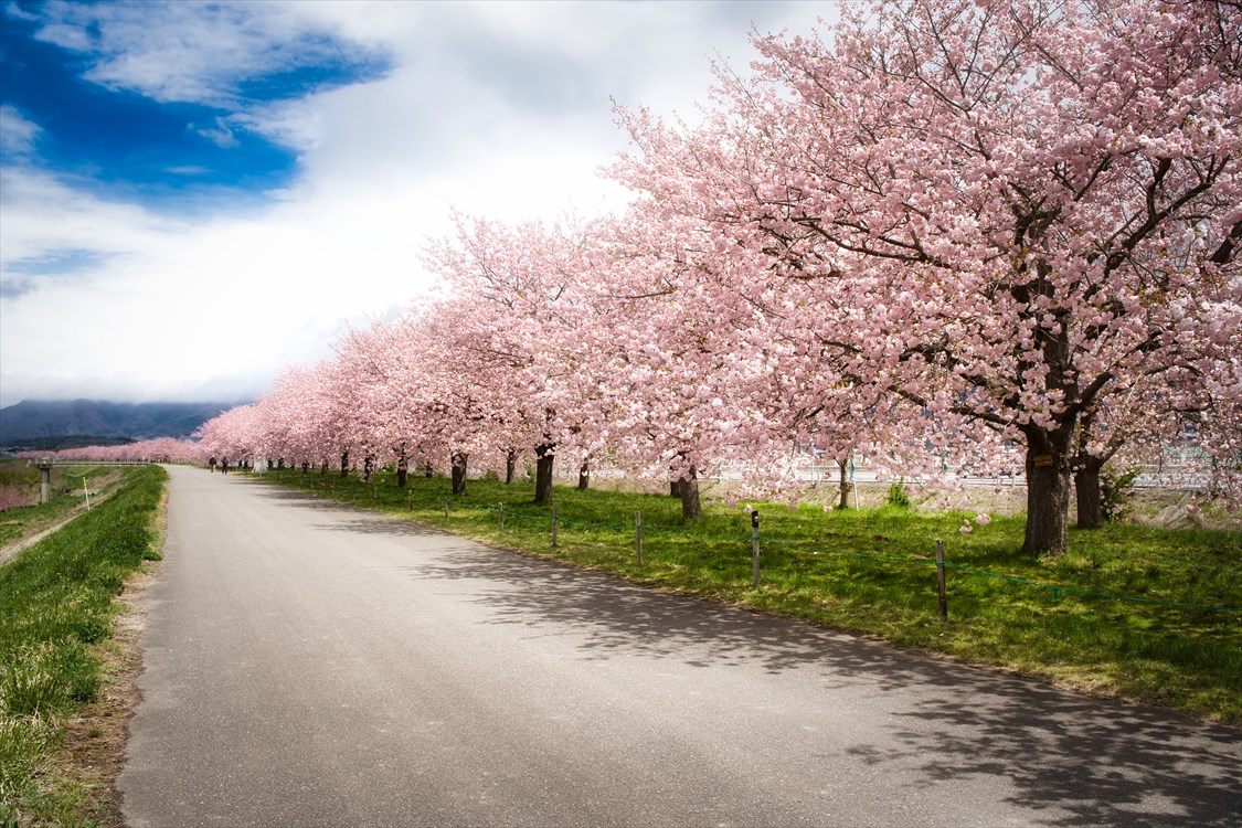 栗と葛飾北斎で有名な小布施町の桜つつみ・道の駅おぶせ〜中野市方面へ約4キロの八重桜並木です♪
