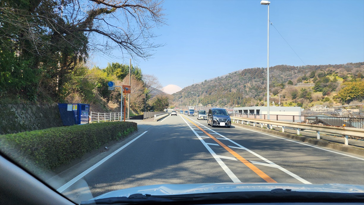 山北町立 「中川温泉・ぶなの湯」向かいで前方に真っ白な富士山 | ||||