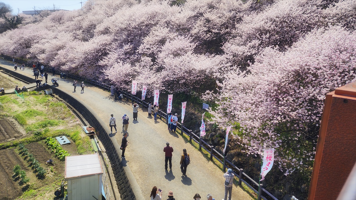 大雄町「花咲く里山」は二分咲きで残念賞 (ノД`) 駐車場は有料 |