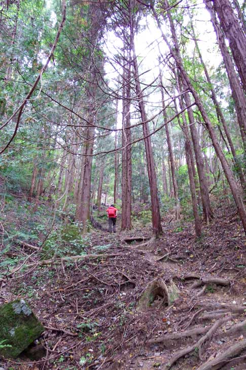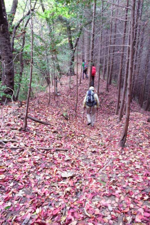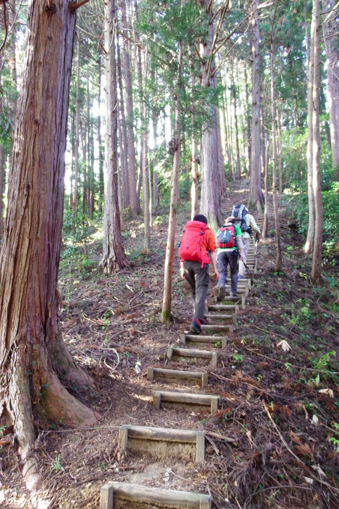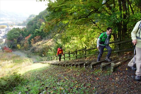 急坂を下る | 《写真にマウスを》 兎岩登山口・キャンプ場施設 |