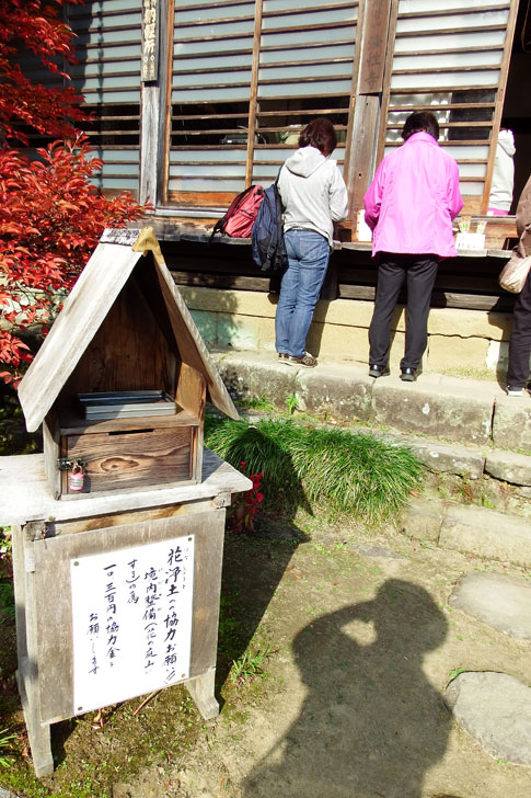 登山道は境内を通過するので 協力金300円(1名)を納める |