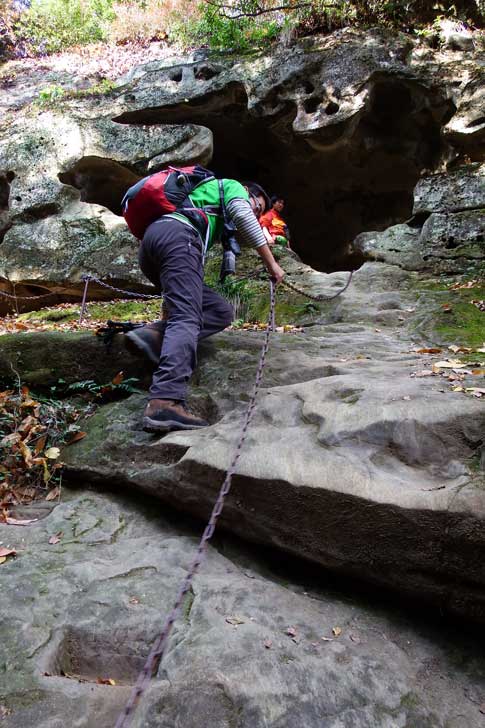 龍虎岩・胎内観音 よく眺めるとyamaoさん横、伊藤さん右上の突き出た岩がかなり不気味 |