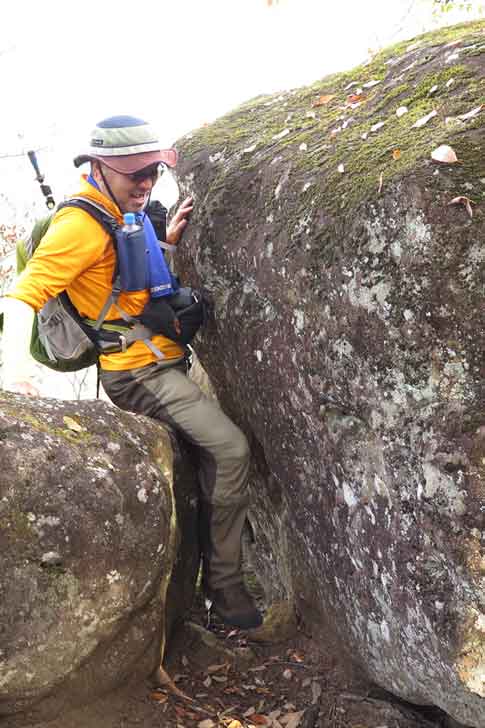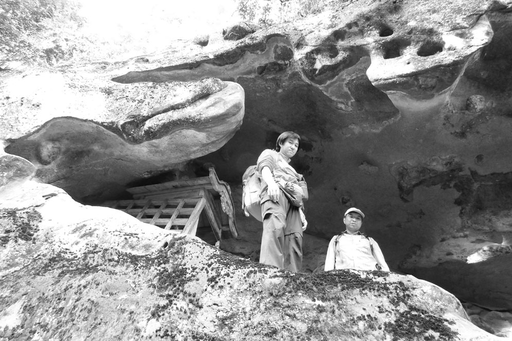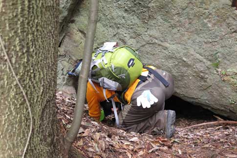 胎内潜り?で悪戦苦闘中の伊藤さん | 龍虎岩・胎内観音 | |||