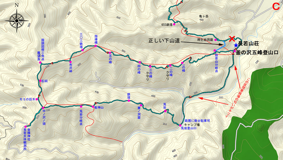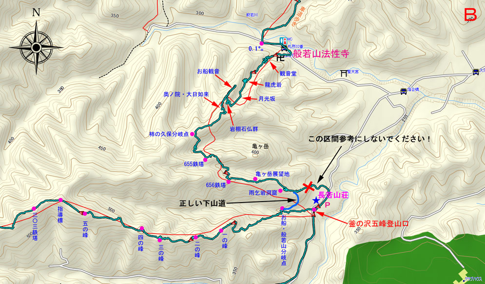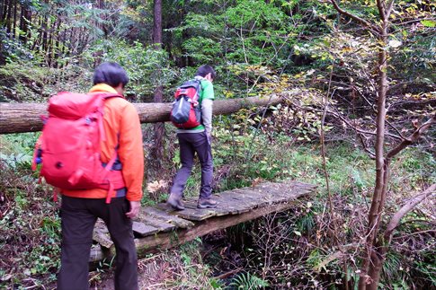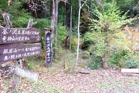 釜の沢五峰登山口 | 木橋の先に般若山分岐点あり | |||