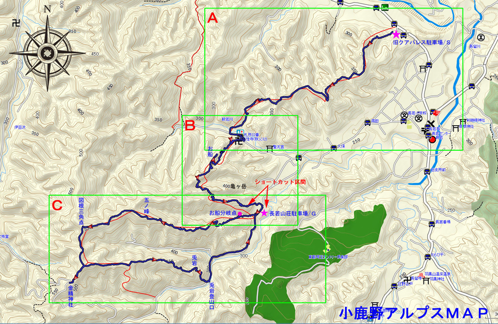 行程が長いのでABC区間毎の拡大地図を下段に作成 | ||||