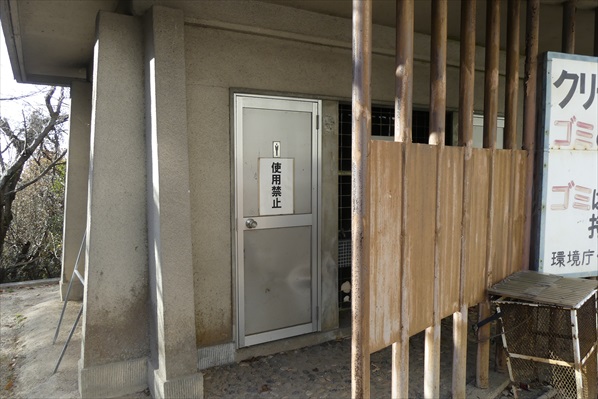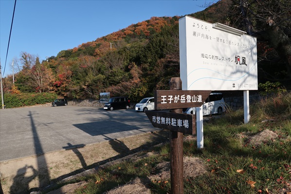市営無料駐車場横が登山口 トイレは国道を挟んだ真向かいにあり |