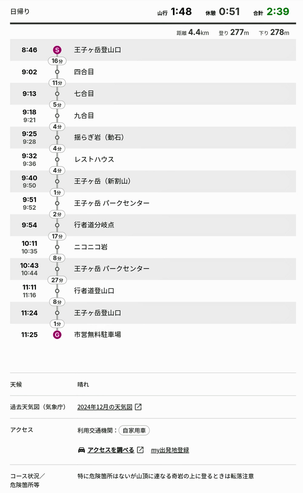 《王子ヶ岳コースタイム他》 写真撮影時間20分~100分含む |