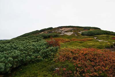 小串硫黄鉱山跡のなごりと毛無山 | ハイマツとクロマメノキの間をぬって毛無山へ | |||