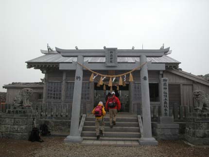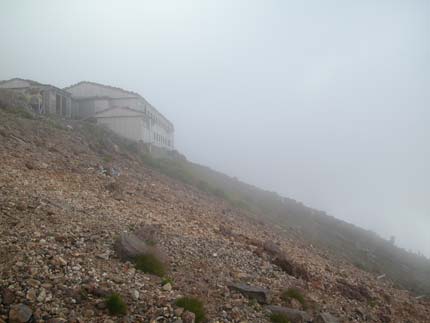 王滝頂上山荘はガスの中 | 王滝頂上 | |||||||