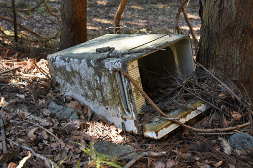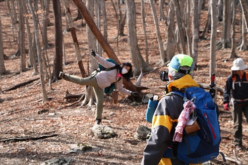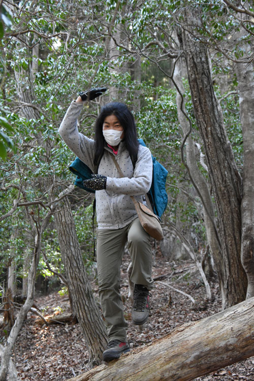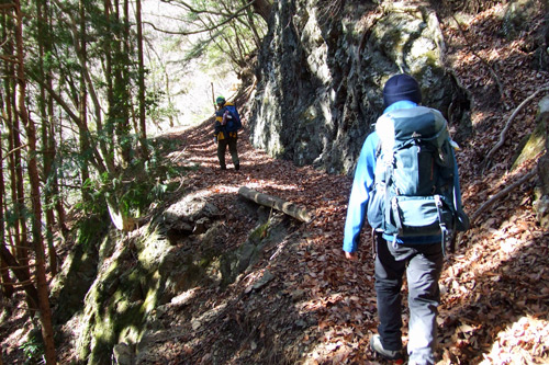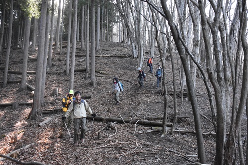 ※登山道ではないので指導標は一切ないうえ、里山特有の踏み跡・林道従事者専用赤テープなどが