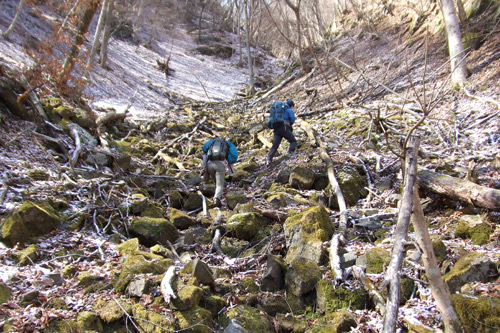 沢に至るまでのルートが荒れているうえ、沢を詰める急登ゴーロ道は初心者の方には