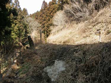 やすらぎの森(キャンプ場)から林道に戻り50b程進むと左に大桁山への指導標がたつ。