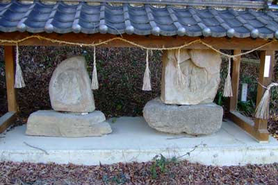 大姥神社前宮の金太郎と道祖神(4体並ぶ) |
