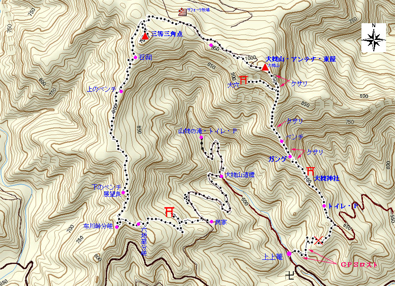 (注) 大姥神社登山口に至る林道が土砂崩落通行止めで上上篭登山口を利用しました。