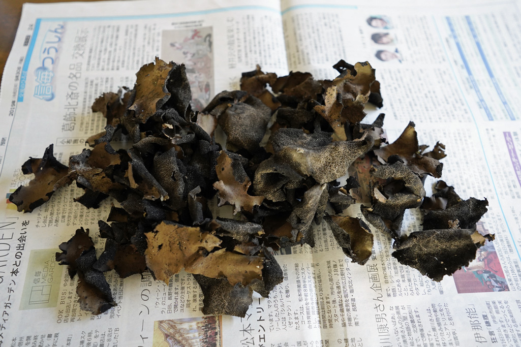 イワタケ(岩茸) 名前はキノコみたいだけれど「苔」の仲間です (注)この段階でも成長しているためビニール袋での長期保存は厳禁 |