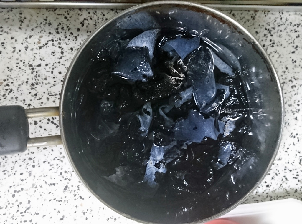 《最終行程》 裏側の黒い部分に汚れが残っているので濁り水がなくなるまで何回も何回ももみ洗いをして下ごしらえ終了! |
