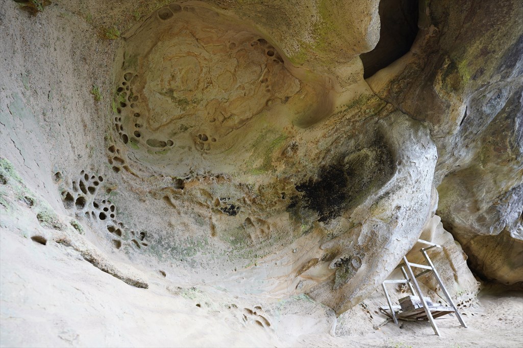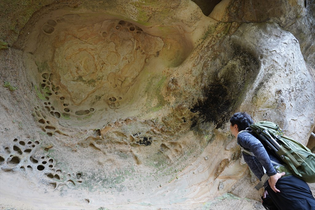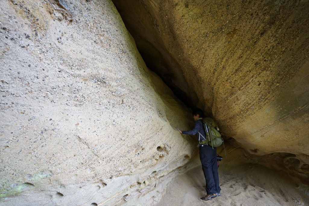 洞窟奥の岩の割れ目に耳を当てると「海の音」が聞こえると伝わる | ||||