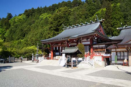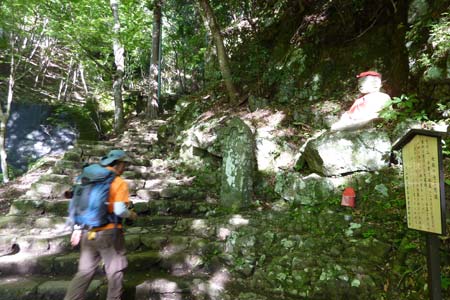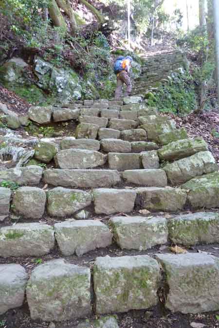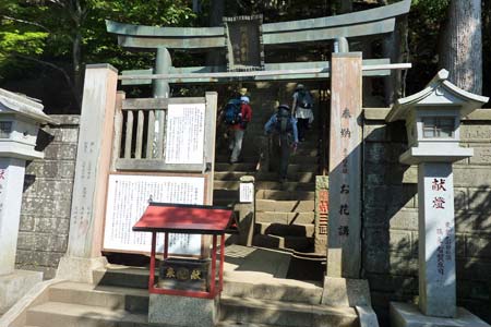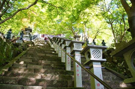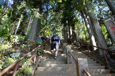 男坂・女坂分岐点(上)から阿夫利神社下社への石段を上る |