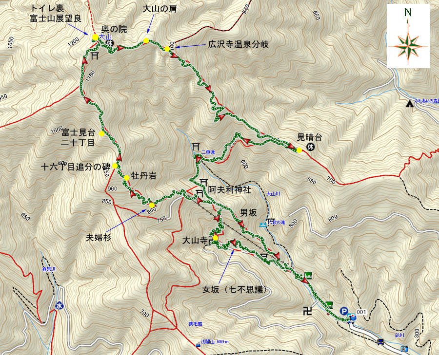 見晴台〜二重の滝〜男坂を経て下山風景 |