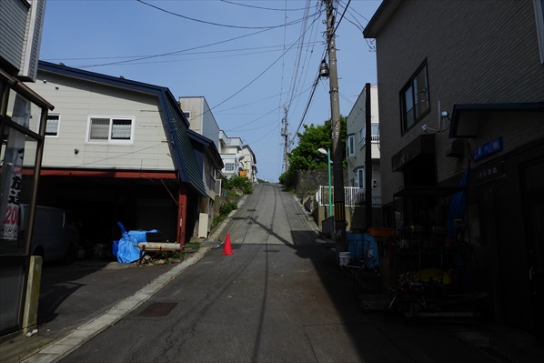 上部に車止めがある坂道を上る | 厳島神社横を通過 | |||