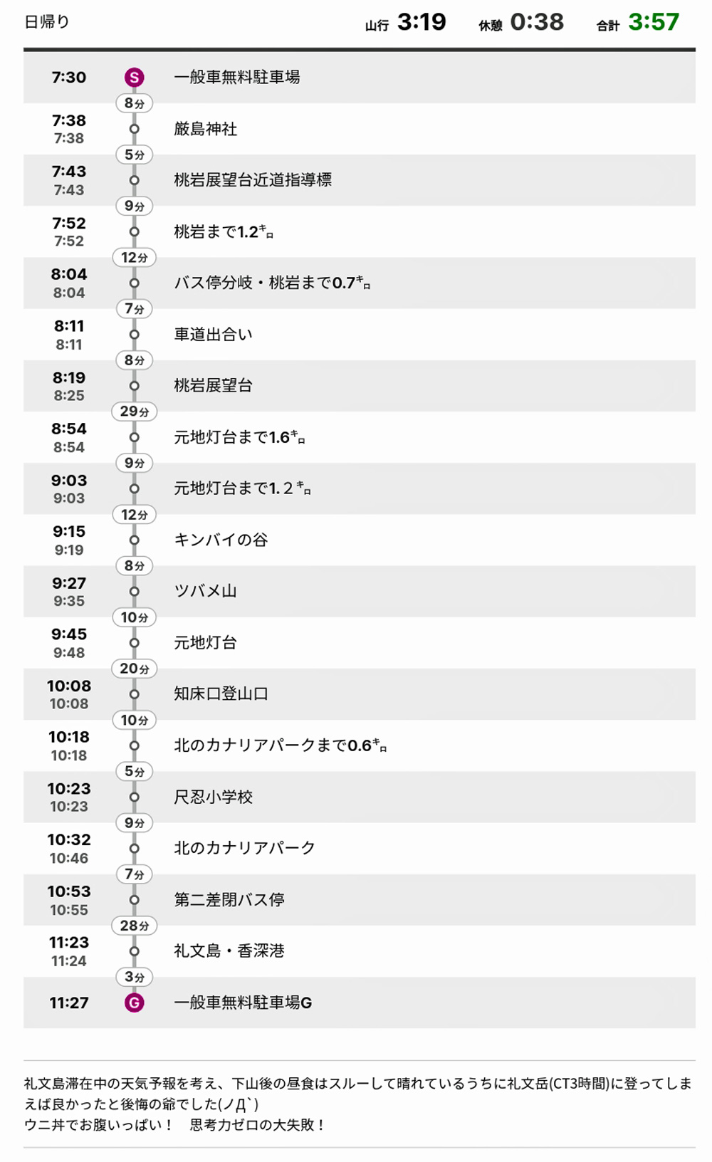 駐車場11時30分着だったので昼食はスルーして礼文岳に登ればよかったと後悔するが これが本当の後悔先にたたずだね(ノД`) |