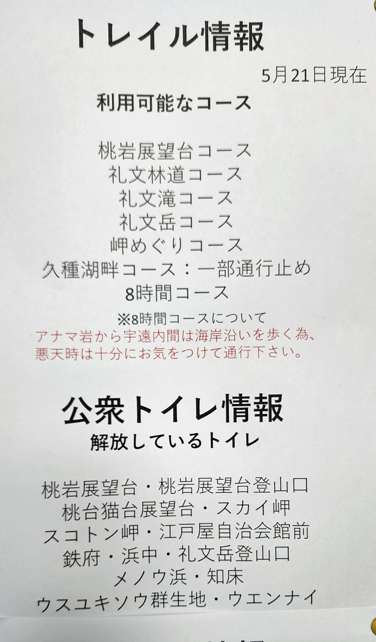 2024年6月現在のトイレ情報 | ||||