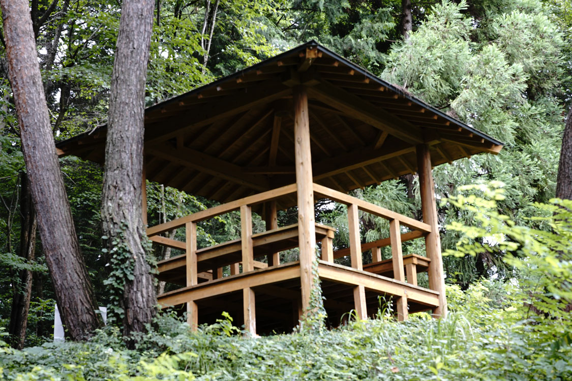 池の畔に建つ公衆トイレ横から探勝歩道に入る | ||||