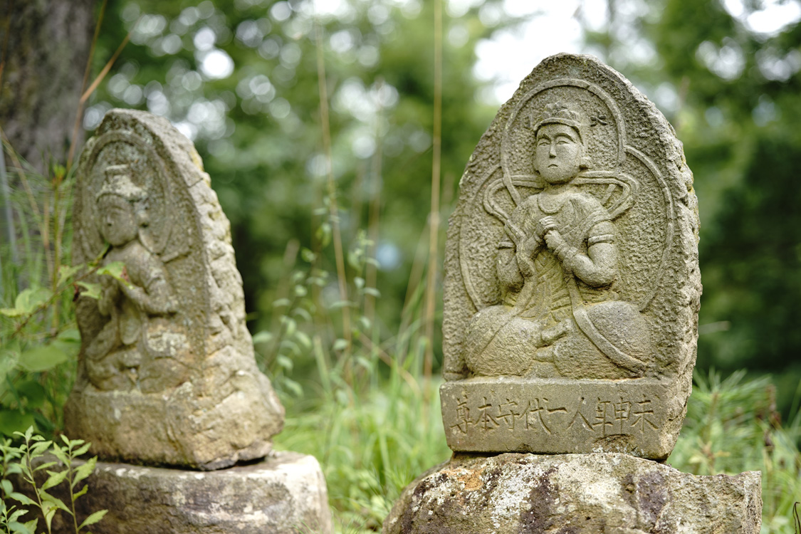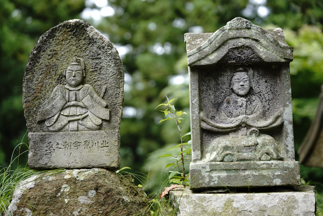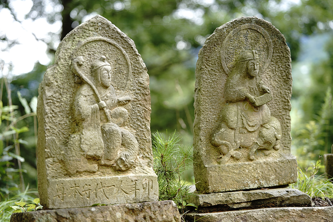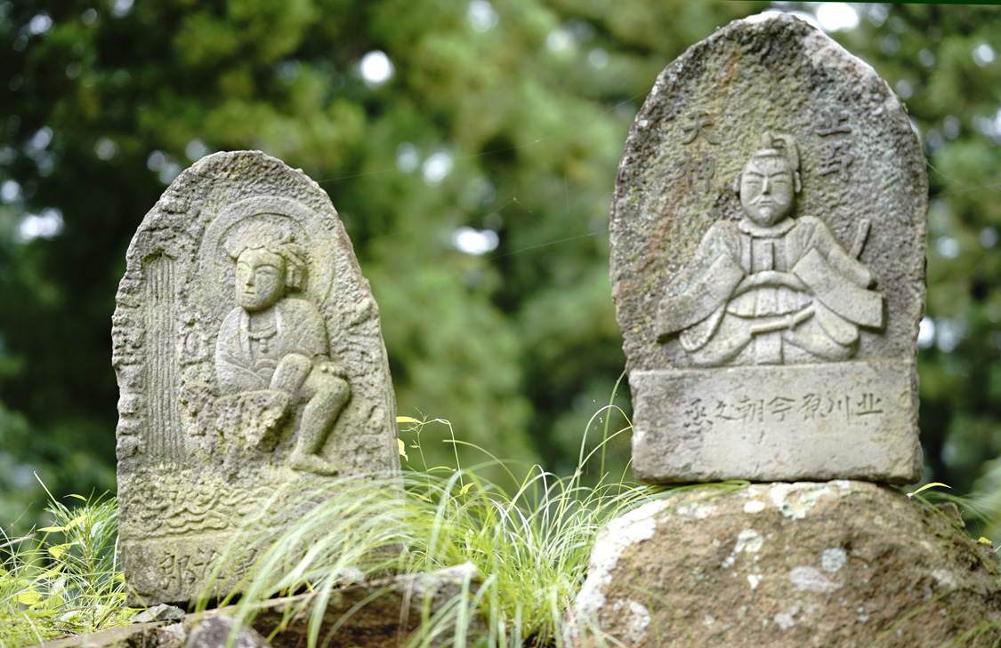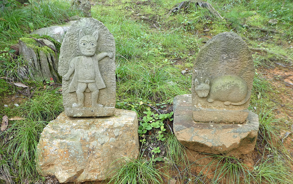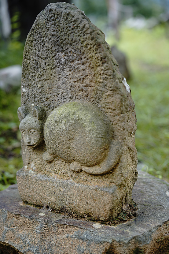 猫 神 様 (二体) 養蚕業を営む農家は蚕の繭を食い荒らすネズミを害獣とみなし天敵である猫を守護神として祀った |