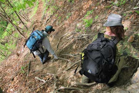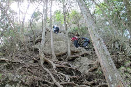 上の写真・岩場TOPで撮影 | 登山者が多いと根っ子道になってしまう | |||