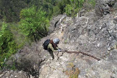 ↑ 日向大谷へは両神山岩頭部の南側のクサリ場を下る ↑ | ||||