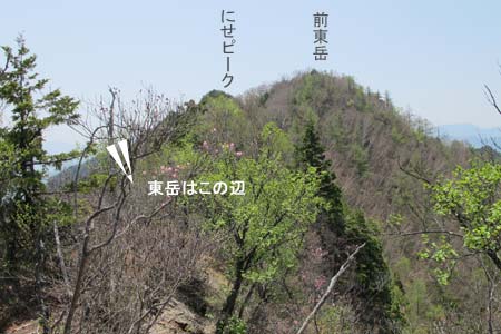 西岳 1613M | 東岳・両神山方面 鞍部まで降りて手前ピークの東岳まで登り返す |