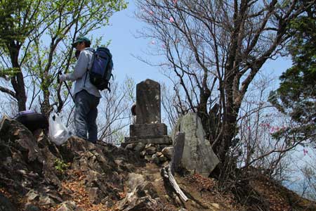 山頂手前の岩稜部に建立された石碑 | 山頂手前の岩稜部は展望良 | |||