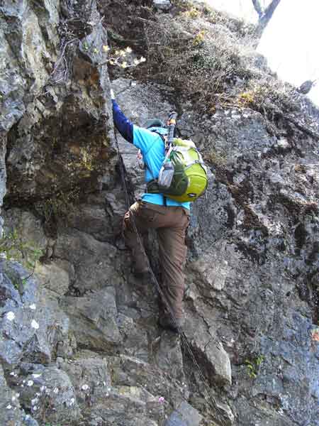 八丁峠以降は徐々に渋滞が始まる | クサリ場/悪いクサリ使用例 | |||